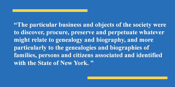 On this date 150 years ago, the founding of the New York Genealogical and Biographical Society began. A century and a half later, the Society has grown into the largest and oldest genealogy society in the state of New York and has helped hundreds of thousands of researchers discover more about their New York ancestor and heritage.