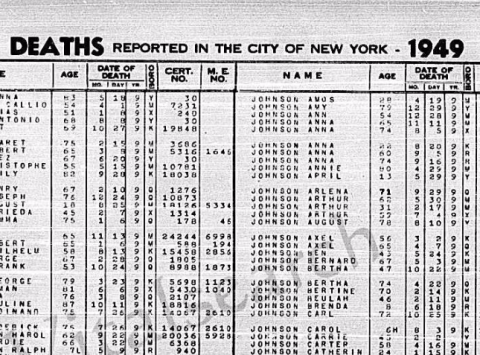 The new index is from 1949 to 1965 and provided by www.vital-searchworldwide.com from NYC Health Department index images. While the images have been accessible online, this is the first time a fully searchable index to these images is available. However, we have noticed that some images are faint and searching the database may not return expected results.