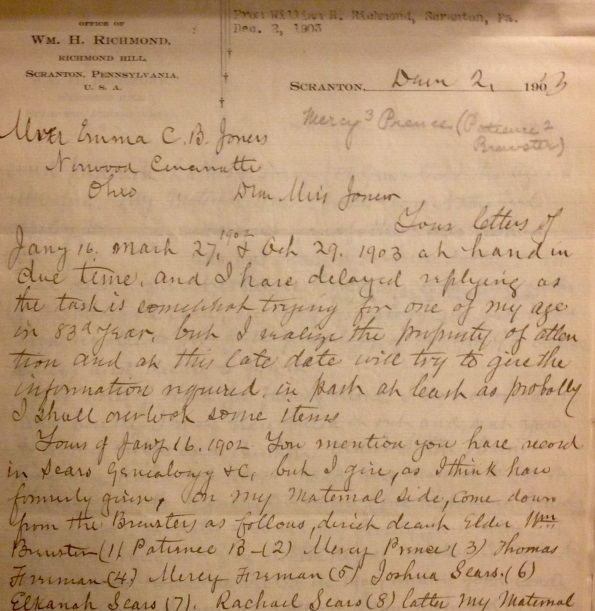 After being carefully inspected by John R. Totten, a member of the NYG&B Society, it was declared in 1913 that the records of the female descendants of Elder William Brewster were the most “valuable manuscript donation our Society’s library has ever received.” [NYG&B Record, 44: 214]
