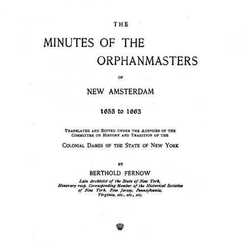 The eLibrary contains the two volumes entitled Minutes of the Orphanmasters of New Amsterdam 1655 to 1663,translated and edited by former New York State archivist Berthold Fernow and published in 1902. In the Netherlands every city had a weeskamer or orphan chamber, a court consisting of "orphanmasters" who, under Roman-Dutch Law, appointed curators (guardians) charged with protecting the estates of widows and orphaned or half-orphaned children.