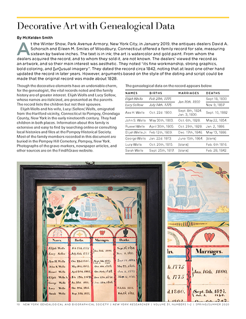 At a time when flexibility is critical, the NYG&B’s hallmark event, The New York State Family History Conference, is undergoing a few expansions. Registration for NYSFHC @ Home, a new all-digital experience, is open. You can read more about what to expect from NYSFHC in 2020 on page 13 of this issue. However, the creation of NYSFHC @ Home is just one of the NYG&B’s ongoing activities.