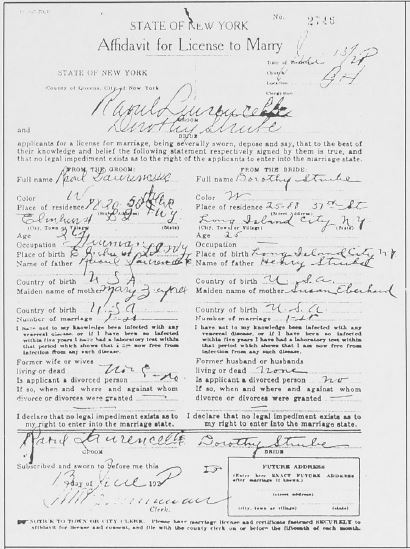 But wait. Let's go back for a moment before the wedding, to the time when the prospective bride and groom sat in the City Clerk's Office of one of New York City's boroughs and filled out, perhaps in their own hand, something more revealing than a marriage certificate: a marriage license affidavit.