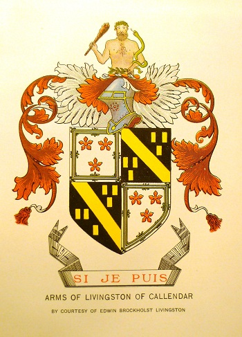 This appears to be some Scottish heraldic theft. The color plate for the Livingston arms appears in the Collection of the New York Genealogical & Biographical Society, Vol. 1 facing page 36. Gilbert Motier Plympton submitted the Livingston family pedigree.