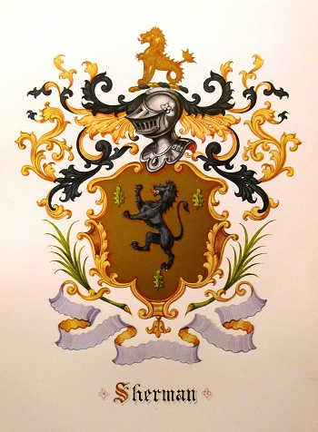 Thomas Townsend Sherman submitted his family pedigree identifying the earliest ancestor as Thomas Sherman (d. 1493). The ancestor who came to America was Capt. John Sherman (1615-1691) who settled in Watertown, Massachusetts, who is listed as having been a Steward at Harvard College in 1662.