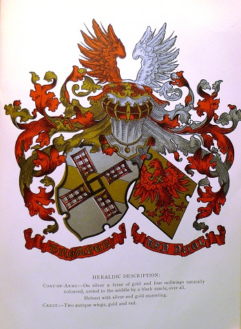 Here, we include all the images, summarize the articles, and provide whatever brief comment or conclusion that was made about the propriety of the use of any of the arms. We also include the description of the arms in heraldic language, called blazon. In many cases, a shield and crest are referred to as a “family” coat of arms. Technically, there is no such thing as family arms. A coat of arms is granted to an individual, the grantee, and is inherited by his descendants. The eldest or first son inherits the arms as used by his father, undifferenced; while the younger siblings difference the shield to with a mark of cadency. This practice is still enforced in Scotland; but hardly observed in England and Wales.