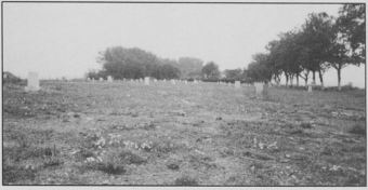 Here, there are rough dirt paths and scattered trees among the graves. Open vistas of grass are dotted every few yards with small white numbered markers sectioning plots of 150 graves, three adult coffins deep. There are no headstones for individual graves. Vegetation overruns the hollow ruins of nearby abandoned buildings that were once a reformatory, a hospital, an auditorium, the warden's house.