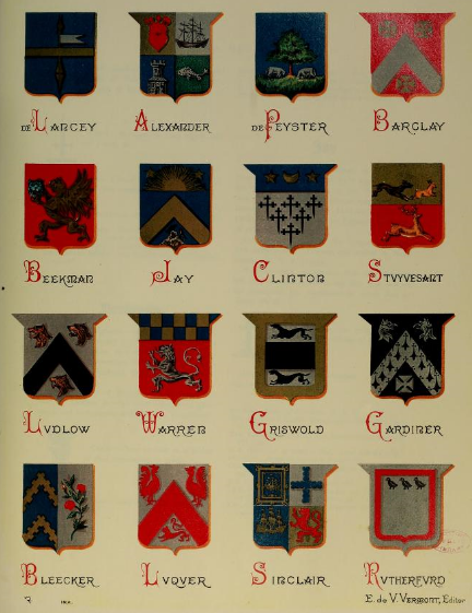 Vermont, E. de V. (ed.) America Heraldica: A Compilation of Coats of Arms, Crests, and Mottoes of Prominent American Families Settled in This Country Before 1800. New York: The America Heraldica Publishing Association, 1887.